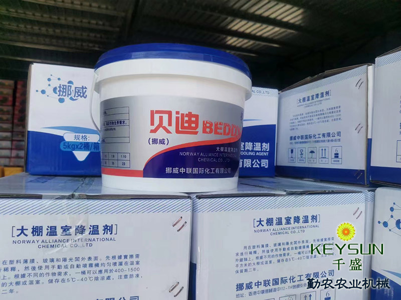 山東禹城勤農(nóng)大棚降溫劑能有效解決蔬菜大棚內(nèi)強(qiáng)光和高溫問題,為作物提供理想的溫光生長環(huán)境。降溫劑在溫室表面形成白色涂層,將太陽直射光轉(zhuǎn)變?yōu)樯⑸涔猓⒂行Х瓷洚a(chǎn)生熱量的紅外光,從而起到遮陽、降溫、防止棚膜老化